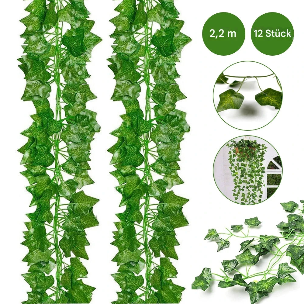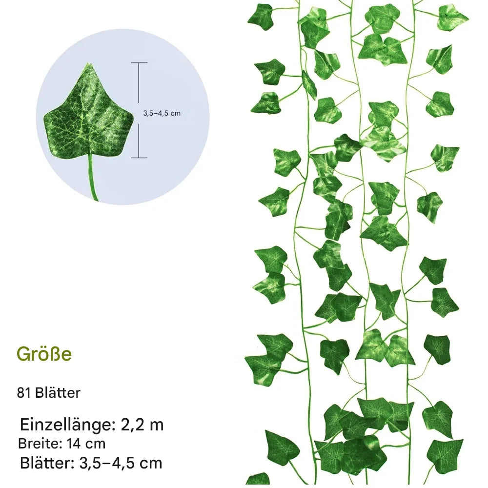 Diese künstlichen Efeuranken verleihen jedem Raum eine frische und lebendige Optik 🌱. Die Blätter bestehen aus hochwertigem Seidenmaterial mit natürlichem Farbverlauf, wodurch sie besonders realistisch wirken und nicht leicht verblassen oder sich verformen 🌿✨.