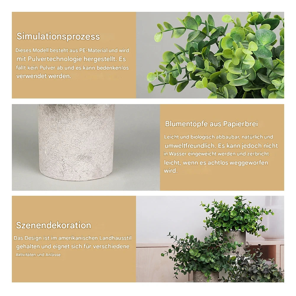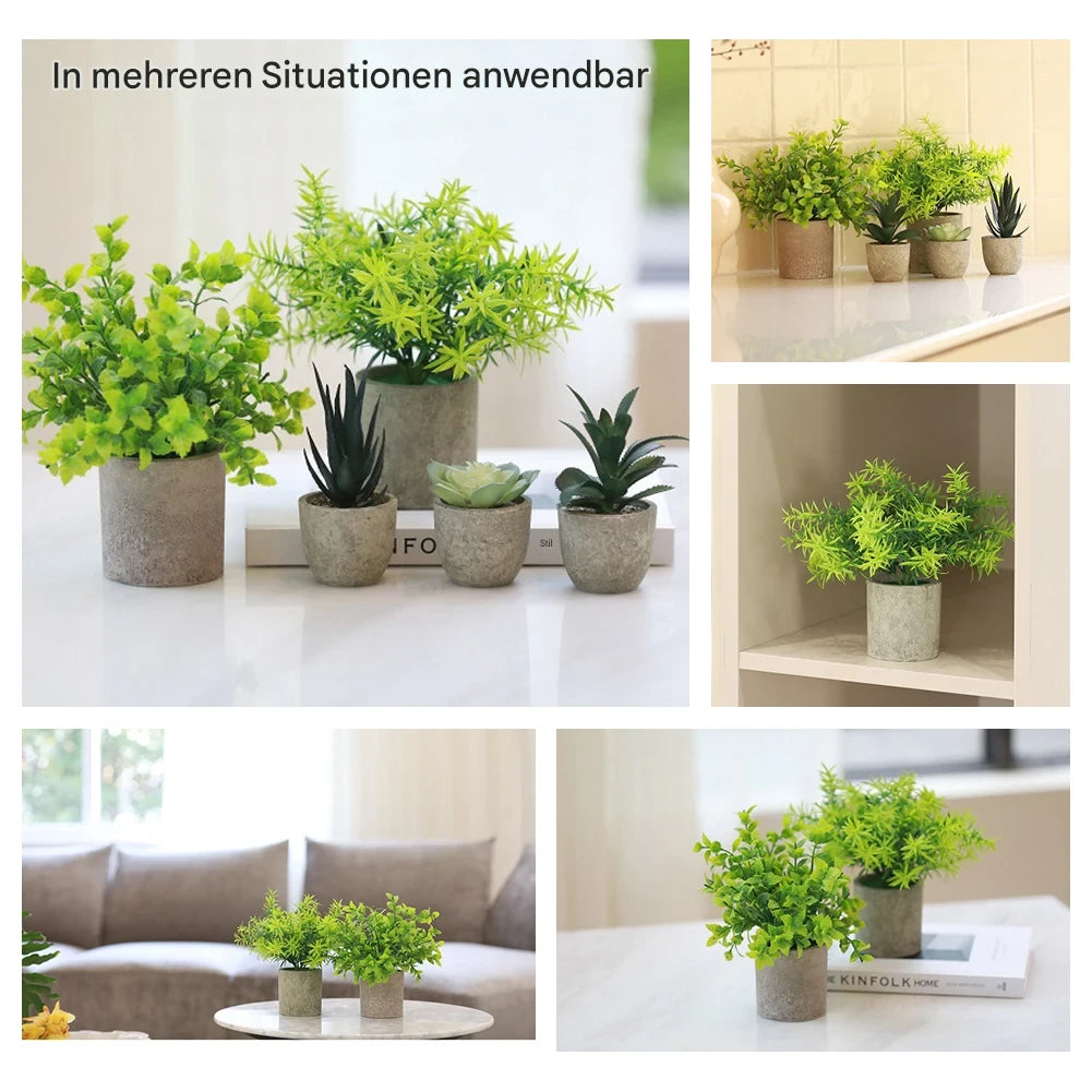 Künstliche Mini Topfpflanzen für Wohnung Büro Wohnzimmer Dekoration