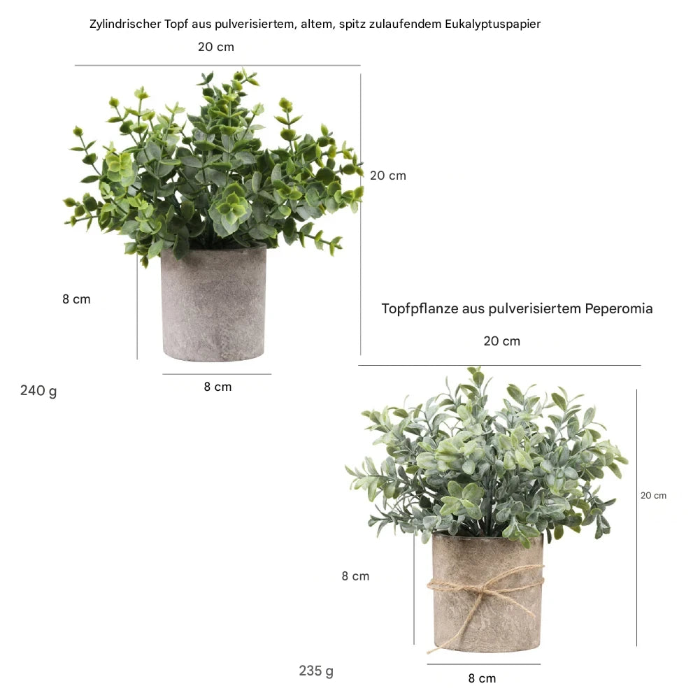 Dieses 2er Set Mini Kunstpflanzen mit naturgetreuen Blättern und umweltfreundlichen Papierpulp Töpfen bringt frische grüne Akzente in jeden Raum ganz ohne Pflegeaufwand. Die hochwertigen Kunstpflanzen bestehen aus langlebigem PE Material, sind farbecht und behalten dauerhaft ihr realistisches Aussehen 🌱✨