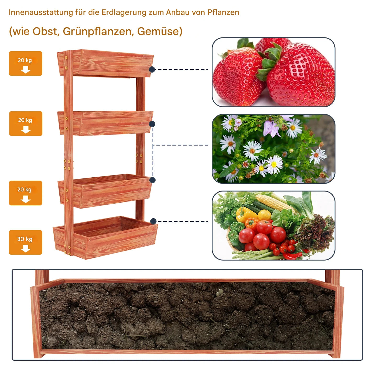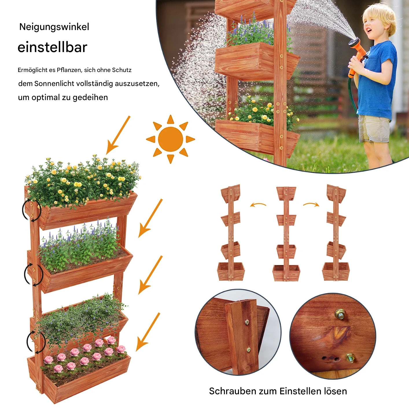 Dieses vertikale Hochbeet aus robustem Tannenholz 🌲 bietet vier geräumige Pflanzkästen für Gemüse, Kräuter und Blumen 🌿🌼. Das platzsparende Design nutzt die Höhe optimal aus und eignet sich perfekt für Gärten, Terrassen und Balkone 🏡.