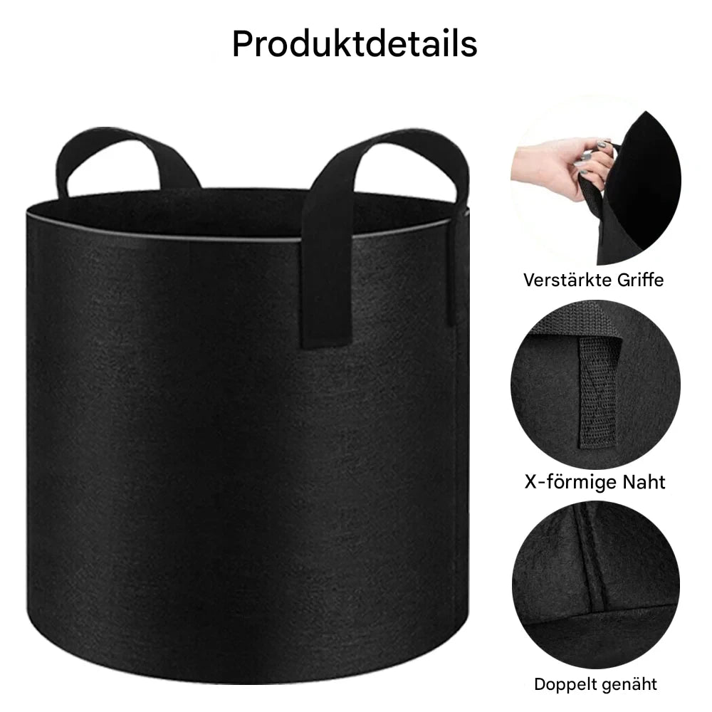 Dank der verstärkten Griffe lassen sich die Beutel auch im gefüllten Zustand leicht transportieren 🚚. Die atmungsaktive Struktur sorgt für eine optimale Sauerstoffversorgung der Wurzeln, verhindert Staunässe und schützt zuverlässig vor Wurzelfäule 💧✨.